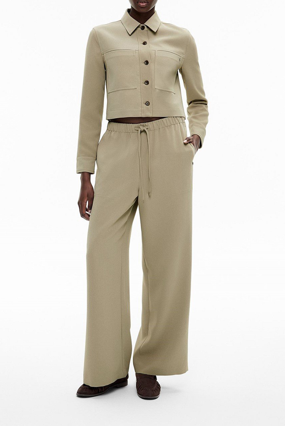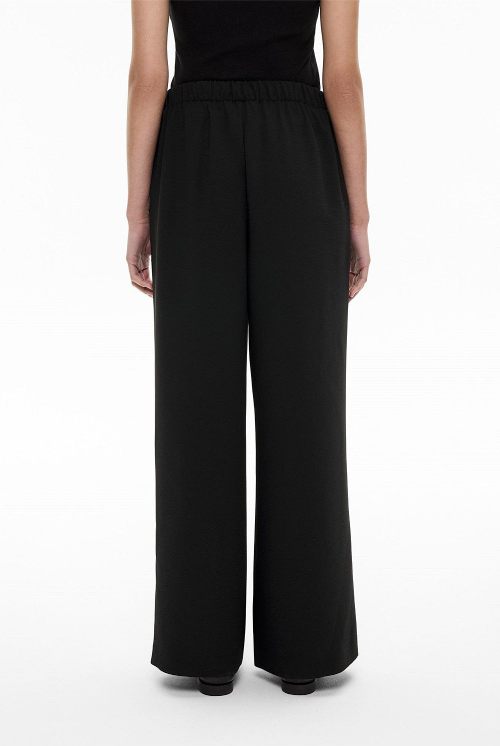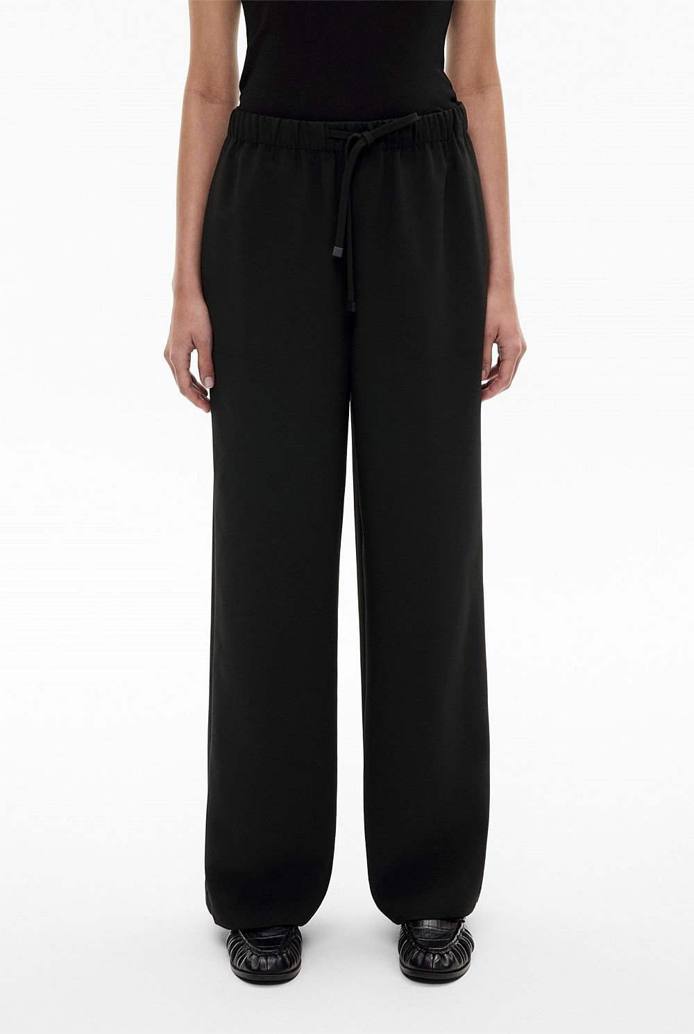 Elevate your casual wardrobe with the Black Breathable Sports Pants. Featuring a high, elasticated waist with a ribbon tie detail and functional side pockets, these long straight leg track pants seamlessly merge comfort and style. Pair with a trench coat and a loafer for on trend dressing, or style with the Patch Pocket Shacket for an elevated take on set dressing.
