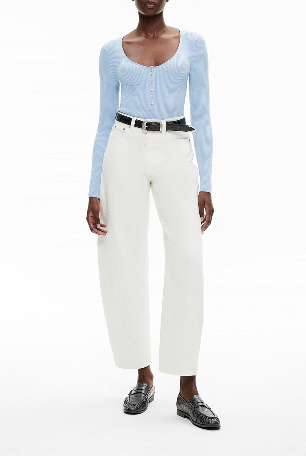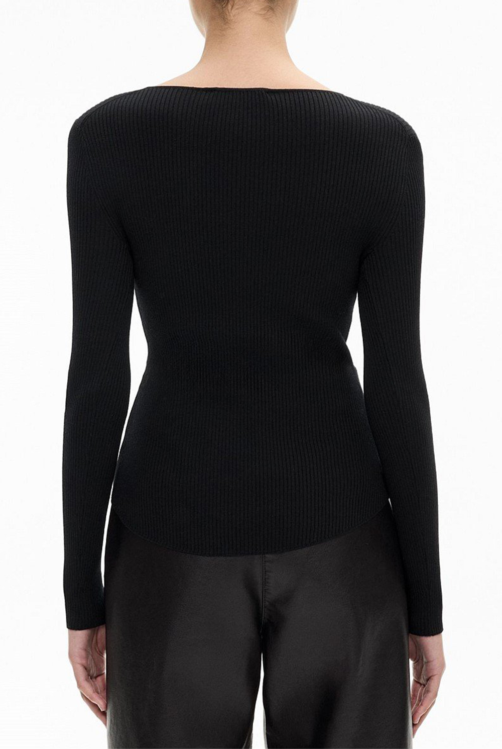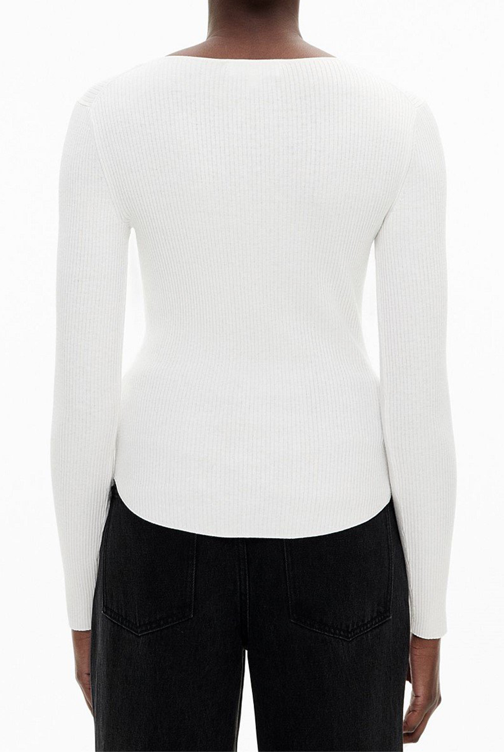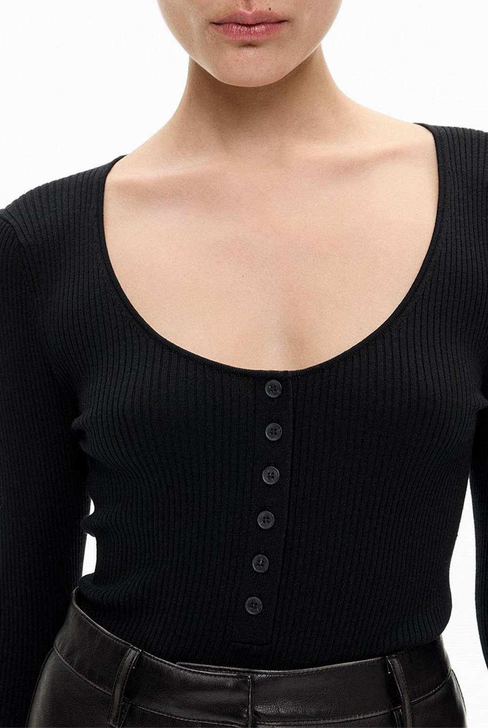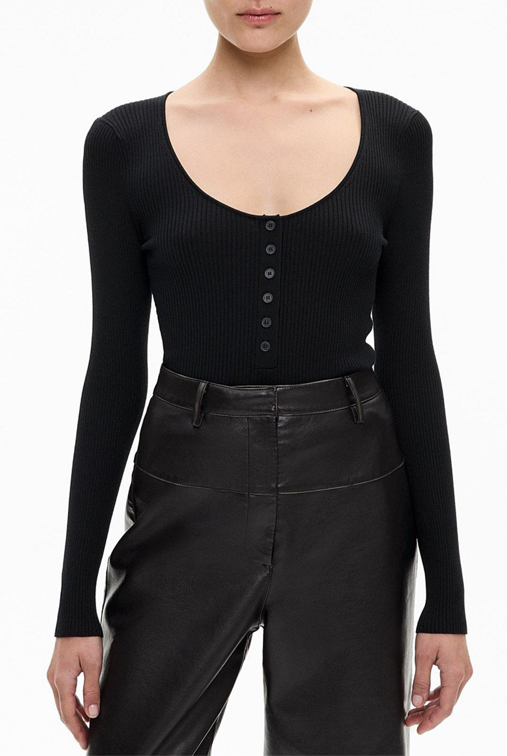 A modern update on a cult classic, the Black Exclusive Slim-Fit Sweater emerges as an elevated winter basic. Featuring a scoop neckline, buttoned placket and straight hem, this top seamlessly blends comfort and sophistication. Style it with jeans and a trench for an off-duty look, or with tailored pants and a blazer for an elevated office outfit.