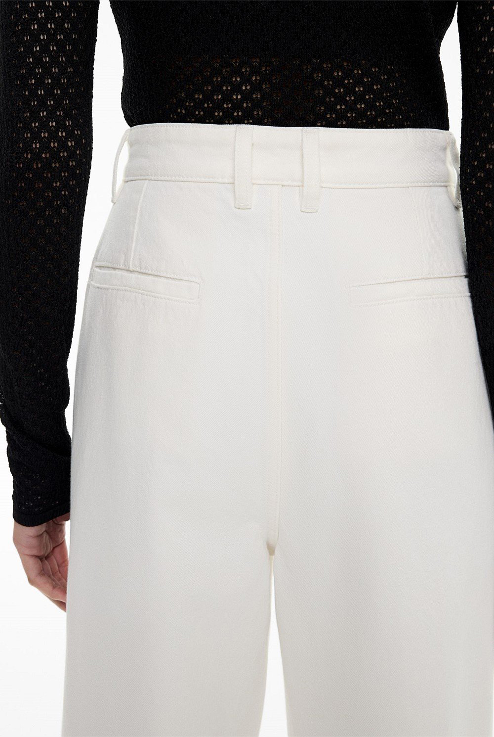 Modern and effortless, the Custom-Made Pure White Jeans emerge as the ideal everyday bottom. Crafted from rigid denim these wide legged pants are cut with a high waist, four functional pockets and flattering pleated detailing. Style with a crisp white shirt and a heeled boot for an elevated office outfit, or dress them down with a boxy tee and a sneaker.