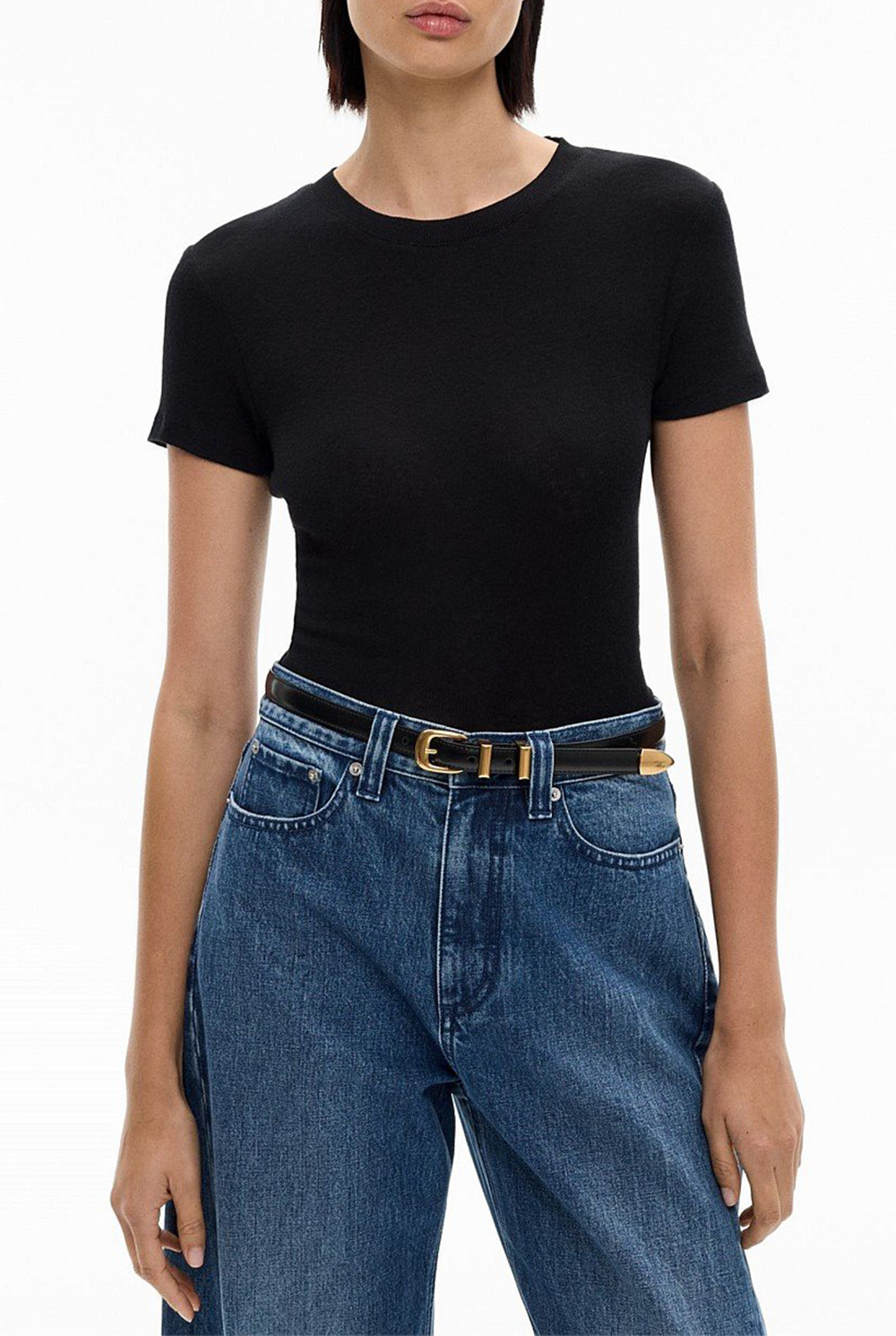 The Tee in cotton blend is a timeless classic, perfectly paired with tailored trousers for laid-back weekends.