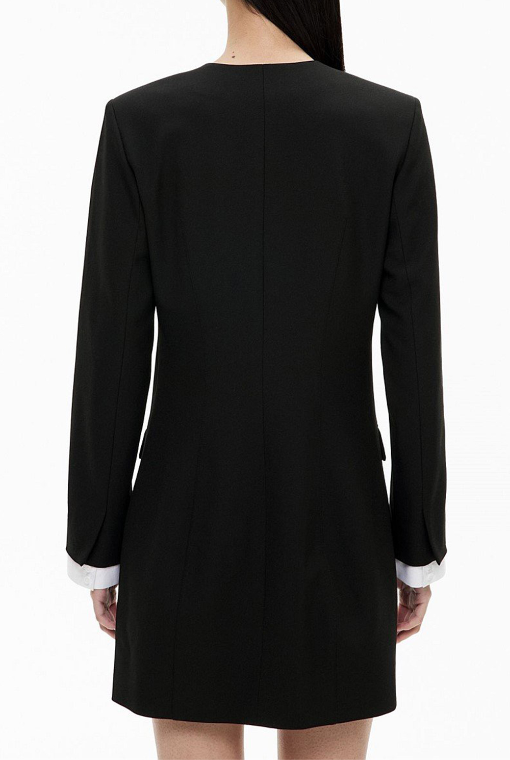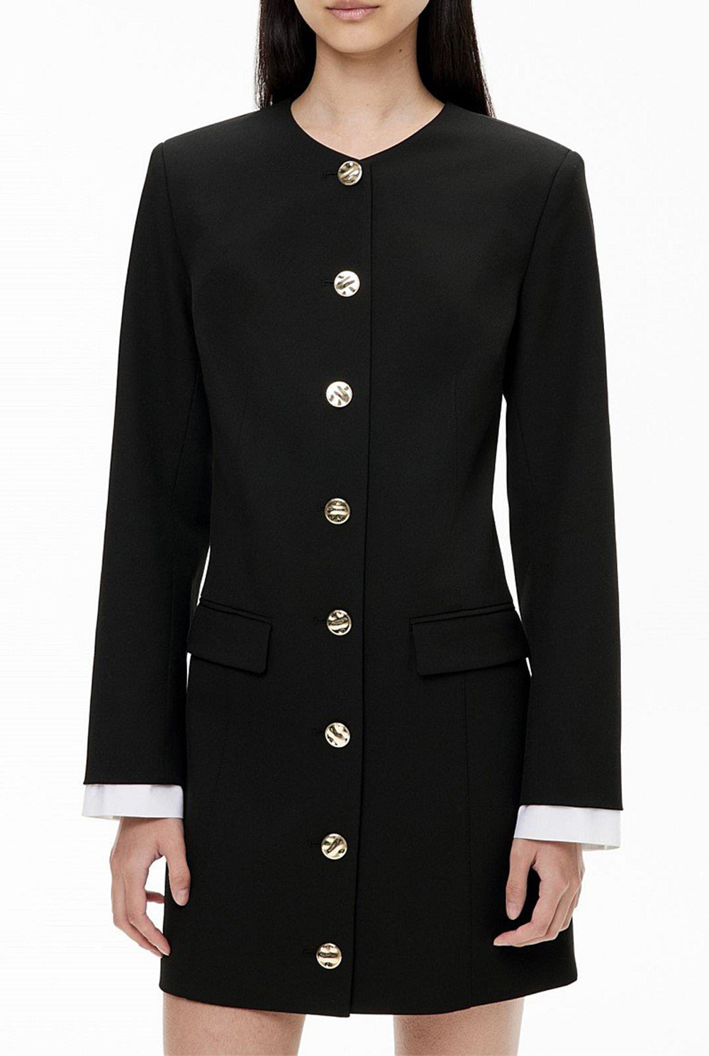Offering effortless polish, the Elegant Button-Up Dress emerges as our new winter favorite piece. Featuring long sleeves with a contrast cuff, sculptural gold buttons and a neat crew neckline, this mini dress embodies refined dressing. Lean into this dress's sophisticated femininity by styling it with a kitten heel and delicate jewellery, or bring contemporary edge by pairing it with a knee high boot.